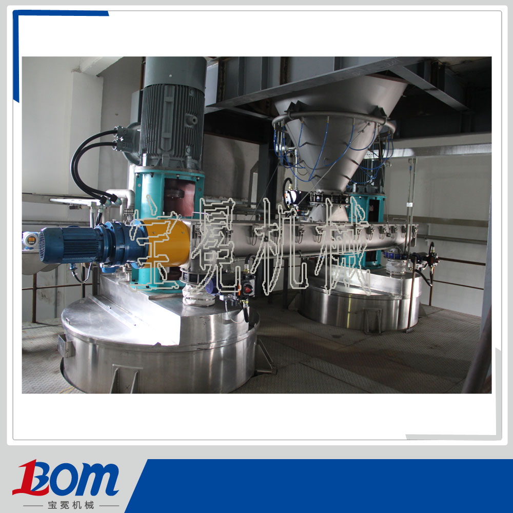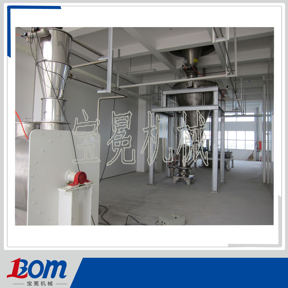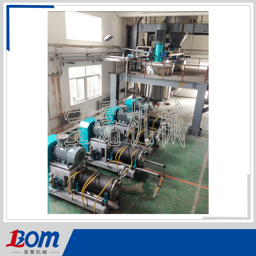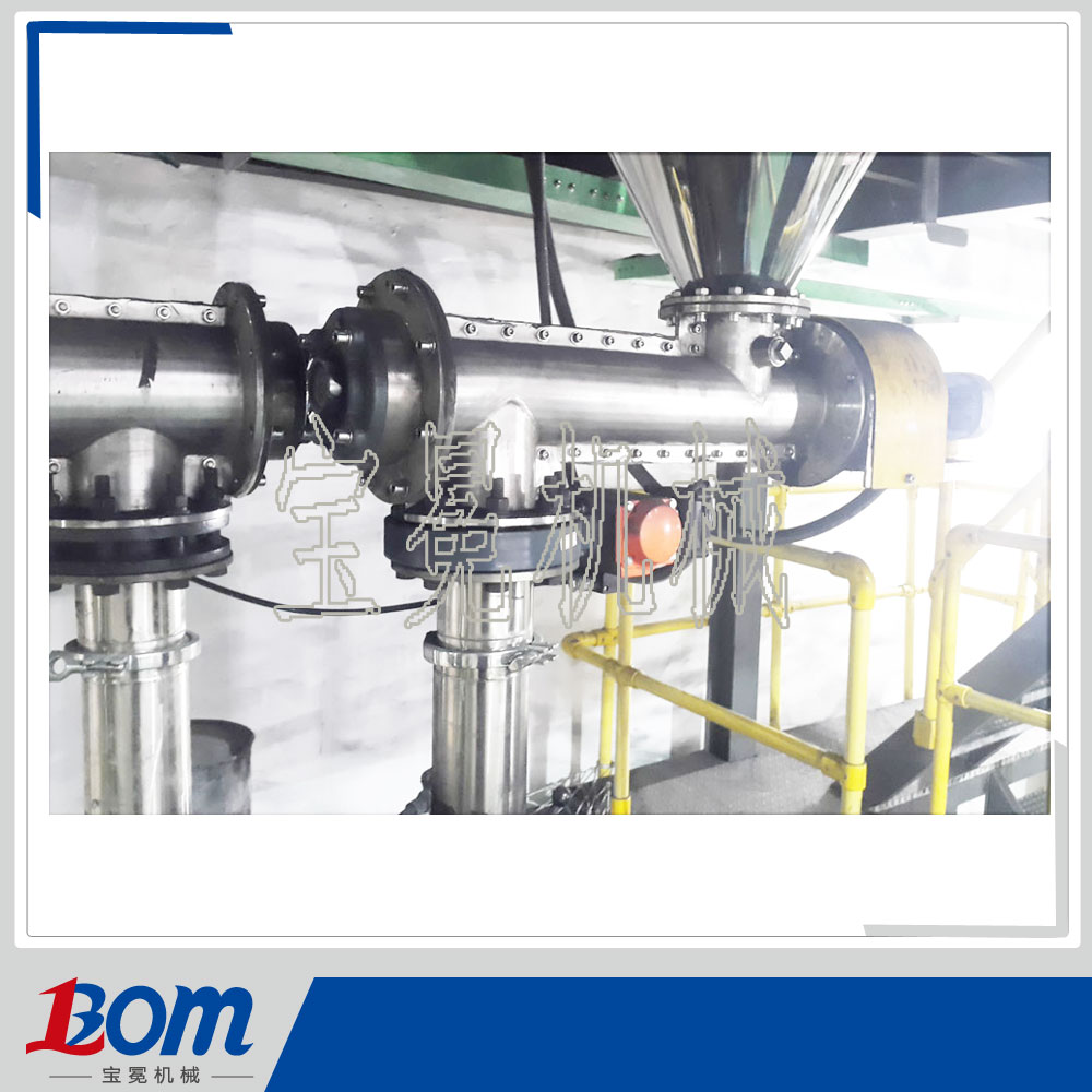 寶冕企業(yè)設計的成套設備,把常規(guī)工藝流程高度集成化,整體設備可以通過PLC自動程序控制,已可單獨流程控制,中間環(huán)節(jié)通過真空上料或泵輸送,全密閉管道連接;